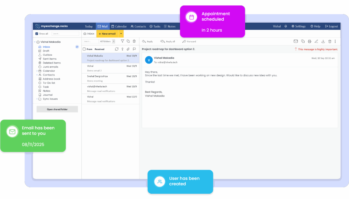 We offer a range of features, including email, calendar, notes, tasks and contacts.